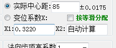在红圈处输入两个变位系数,实际中心距会自动计算出来。