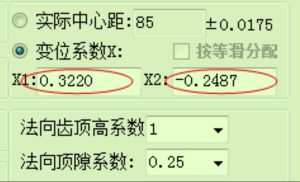 2、当已知两个变位系数时,求实际中心距,可点选“变位系数”如下图所示: